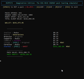 A terminal based card collector where the graphics are powered by the greatest processor available... Your imagination.
